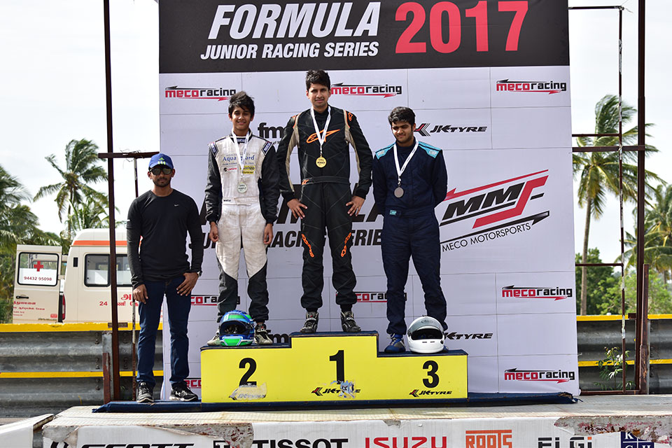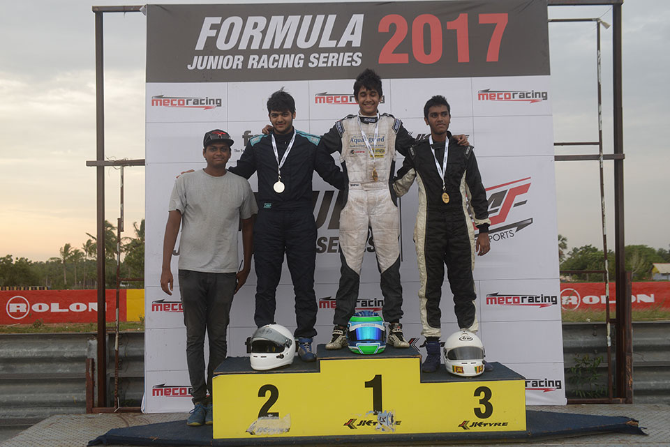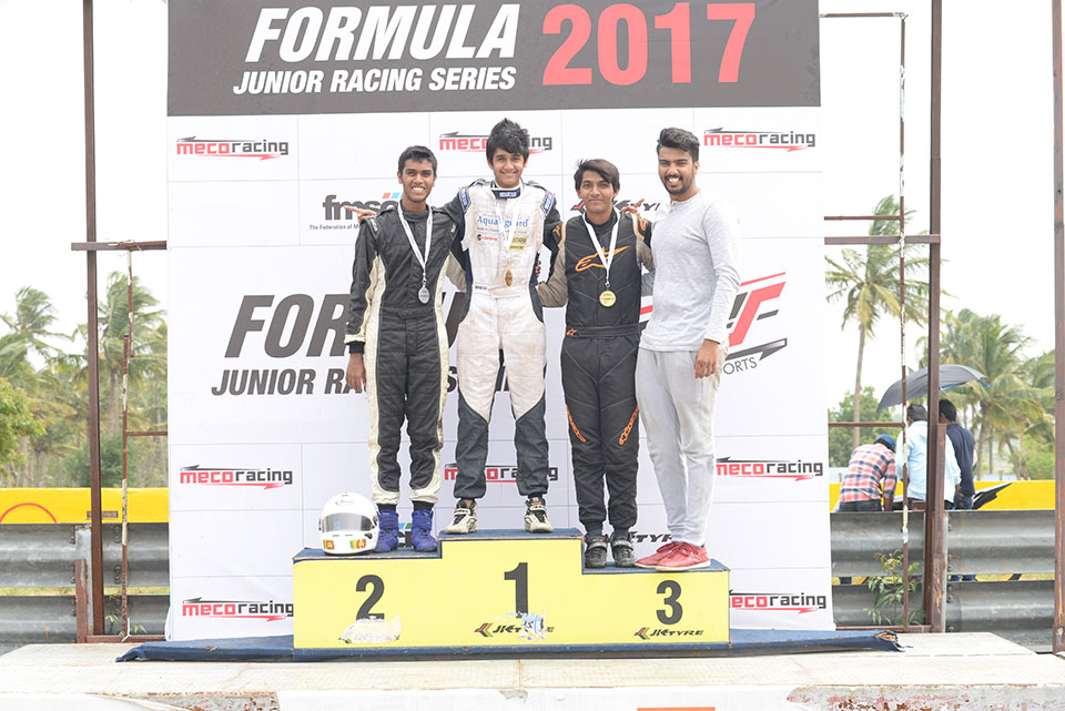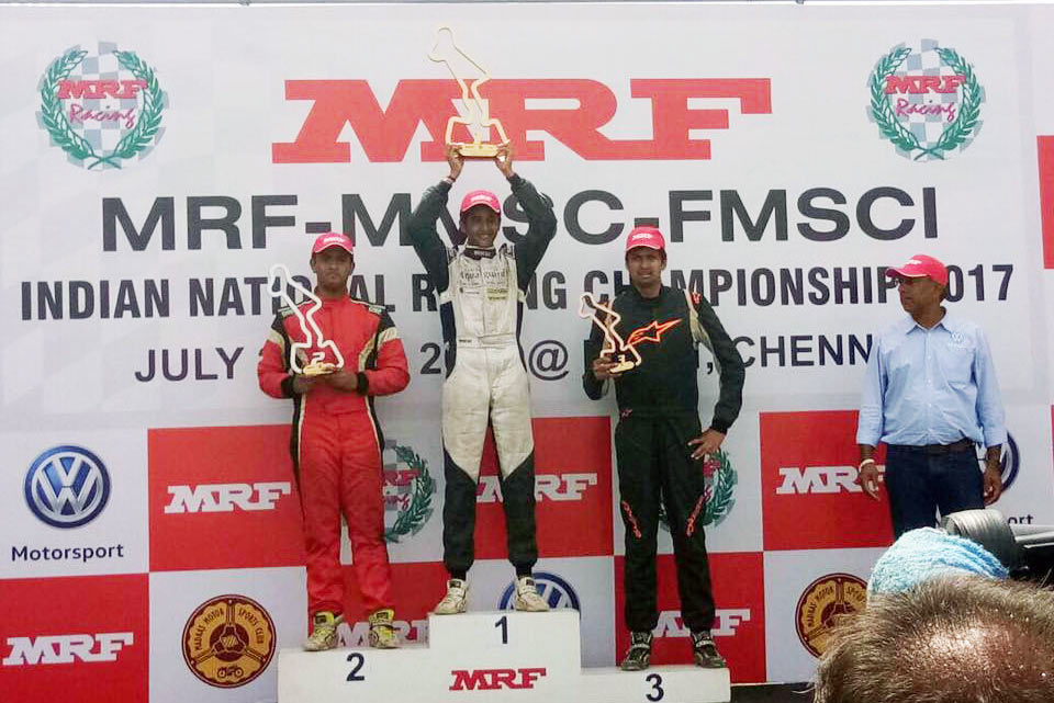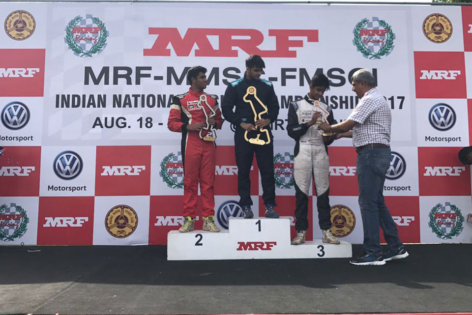8 Podiums(4 wins, 2 second and 2 third) Round-1 to 4 JK Tyre FMSCI National Racing Championship 2017 (Rookie)